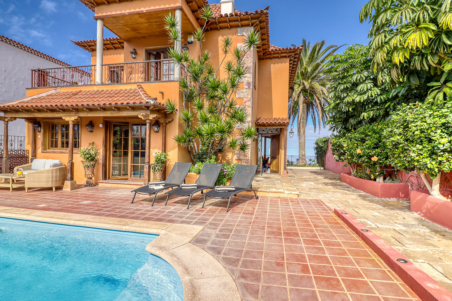 › Puerto de la Cruz › 4 SZ Villa Wohnen & Arbeiten|Pool, Fitnessraum, Büro, Billard