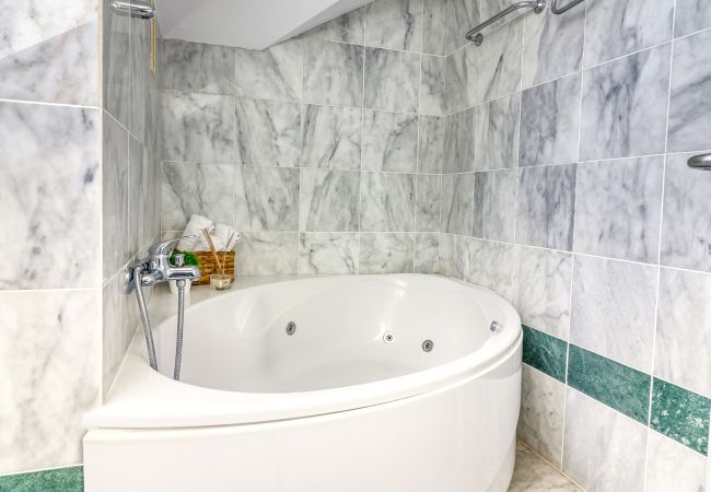 En el interior, encontrarás una cocina completamente equipada, un comedor luminoso y una sala de estar con una smart TV. La habitación principal ofrece una cama king size y un baño privado, mientras que la segunda planta cuenta con otro dormitorio, una terraza más pequeña y una bañera relajante.
